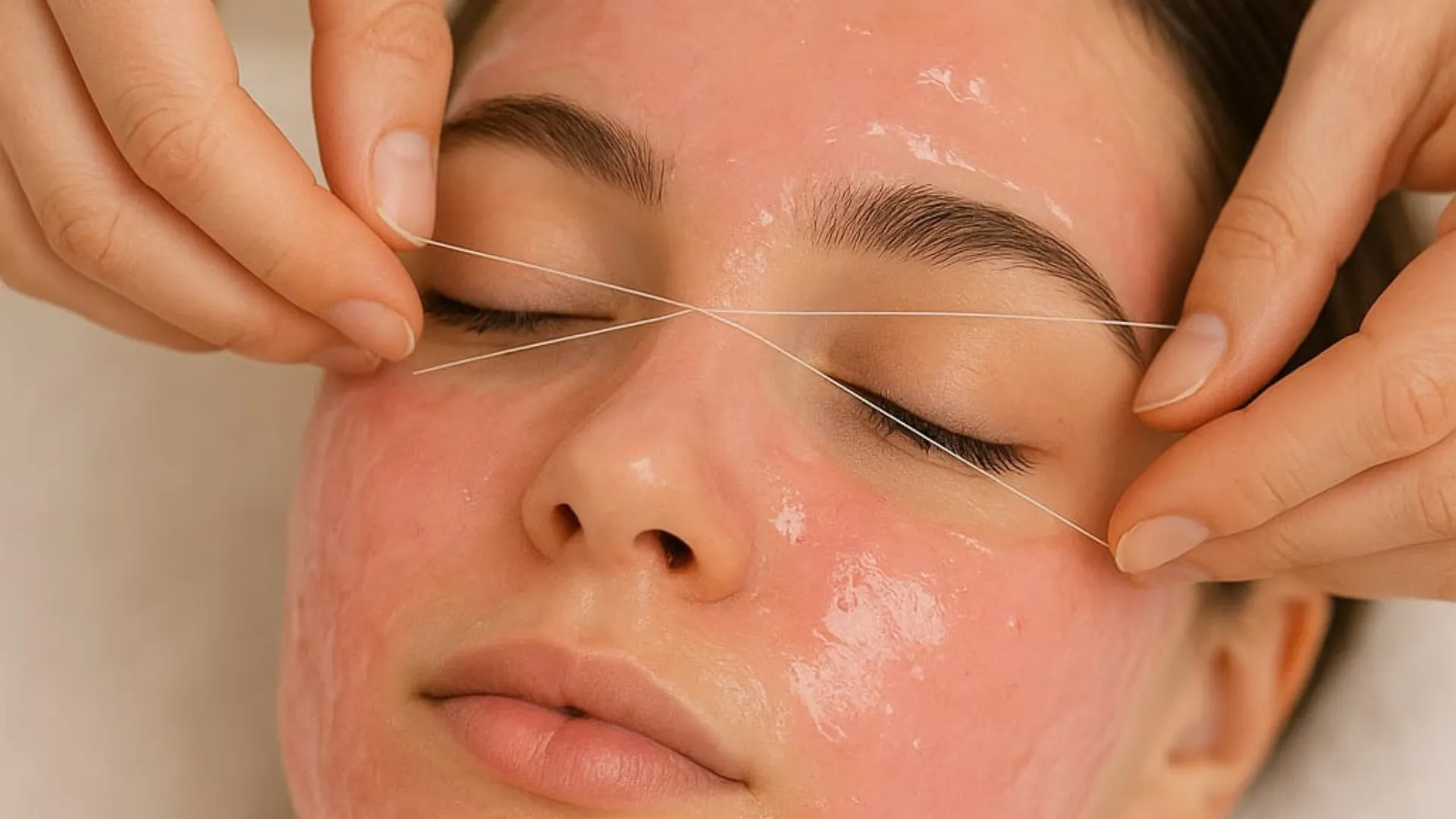 Threading is a precise hair removal method where a thin cotton thread is twisted and rolled over unwanted hair. It removes hair from the follicle, leaving the skin smooth and creating clean, sharp lines.